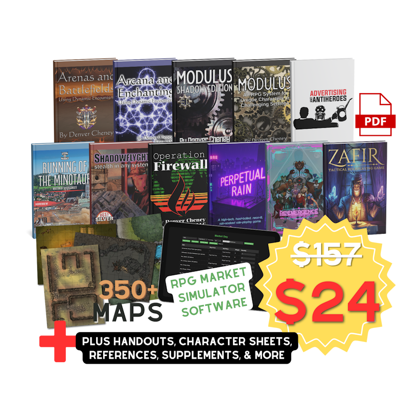 “Zafir’s overall design and lore are exceptional. Its true strength, however, is in the way it seamlessly meshes its lore, tactics-based combat, and narrative-based adventuring into a single document. It floods the mind with story and character inspiration.”Get the Bundle